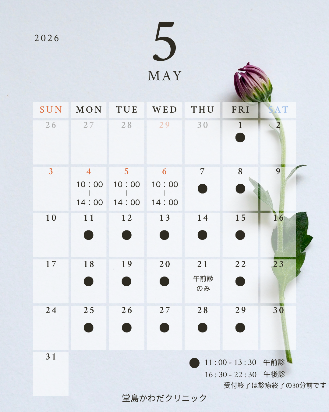 【5月】診療日のご案内